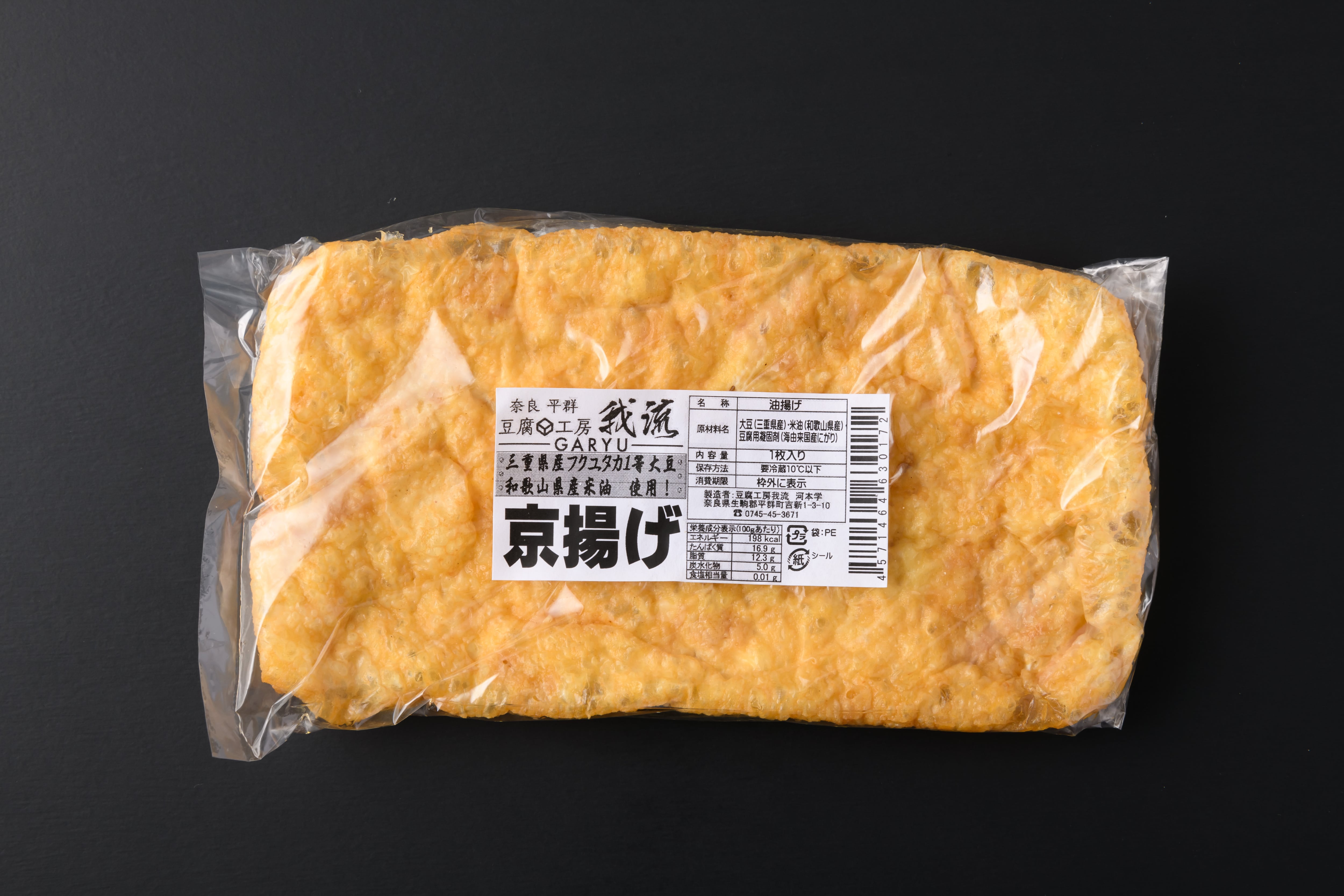 昔から奈良で使われている厚揚げです。煮しめに使われる事が多く味が染みやすく一つたべればお腹が膨れるほど食べごたえがあります。