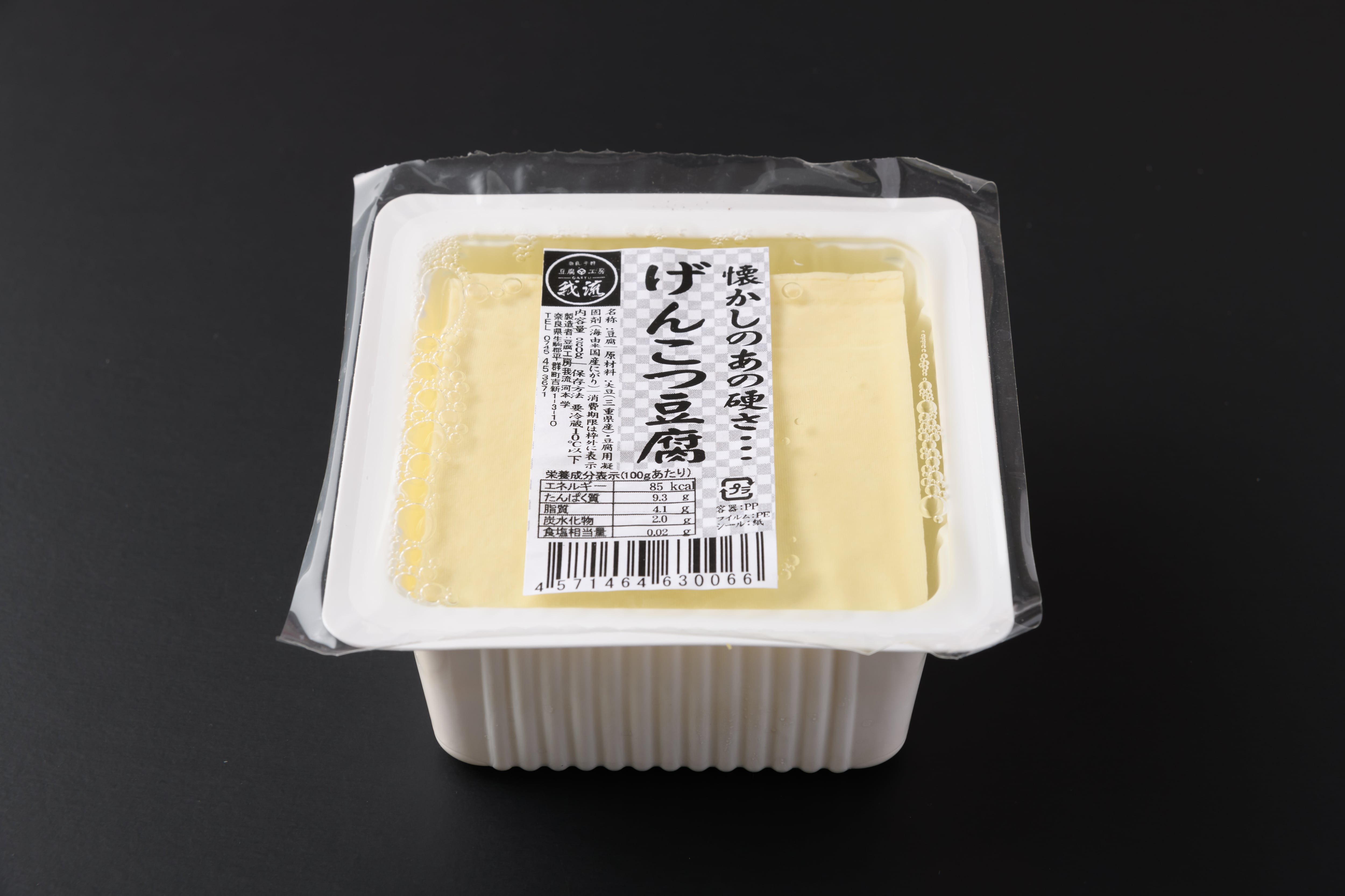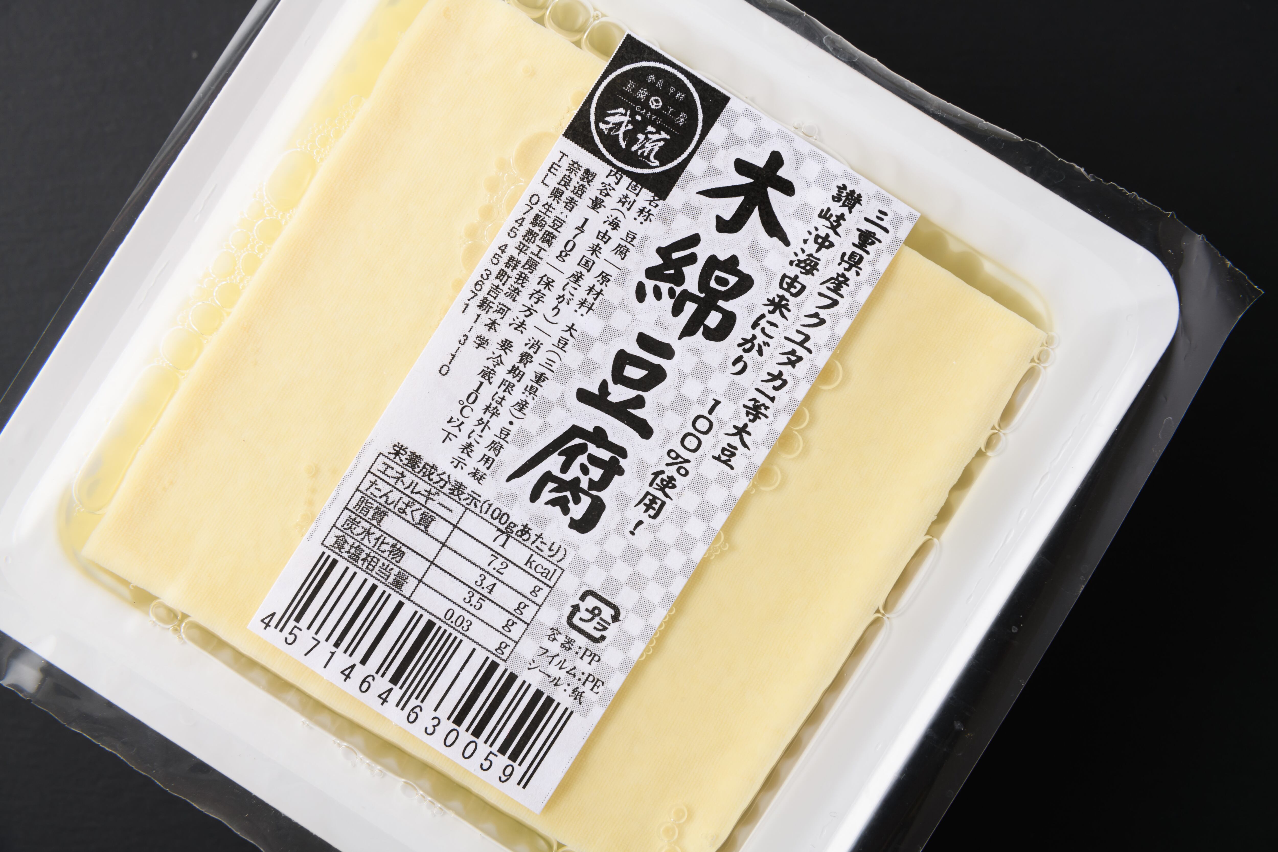 国産フクユタカ1等大豆、国産讃岐沖ニガリだけで作った豆腐です。手寄せにこだわり、水切りも程よく少し歯応えがあります。