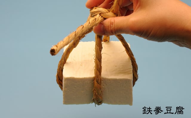 奈良が豆腐の発祥の地と云われ、その豆腐を再現しながら食べやすくしました。縄にもくくれる超硬めな豆腐で縄すが、調理をするとふんわりと舌触りも滑らかになります。ゴーヤチャンプルなどにもってこいです。