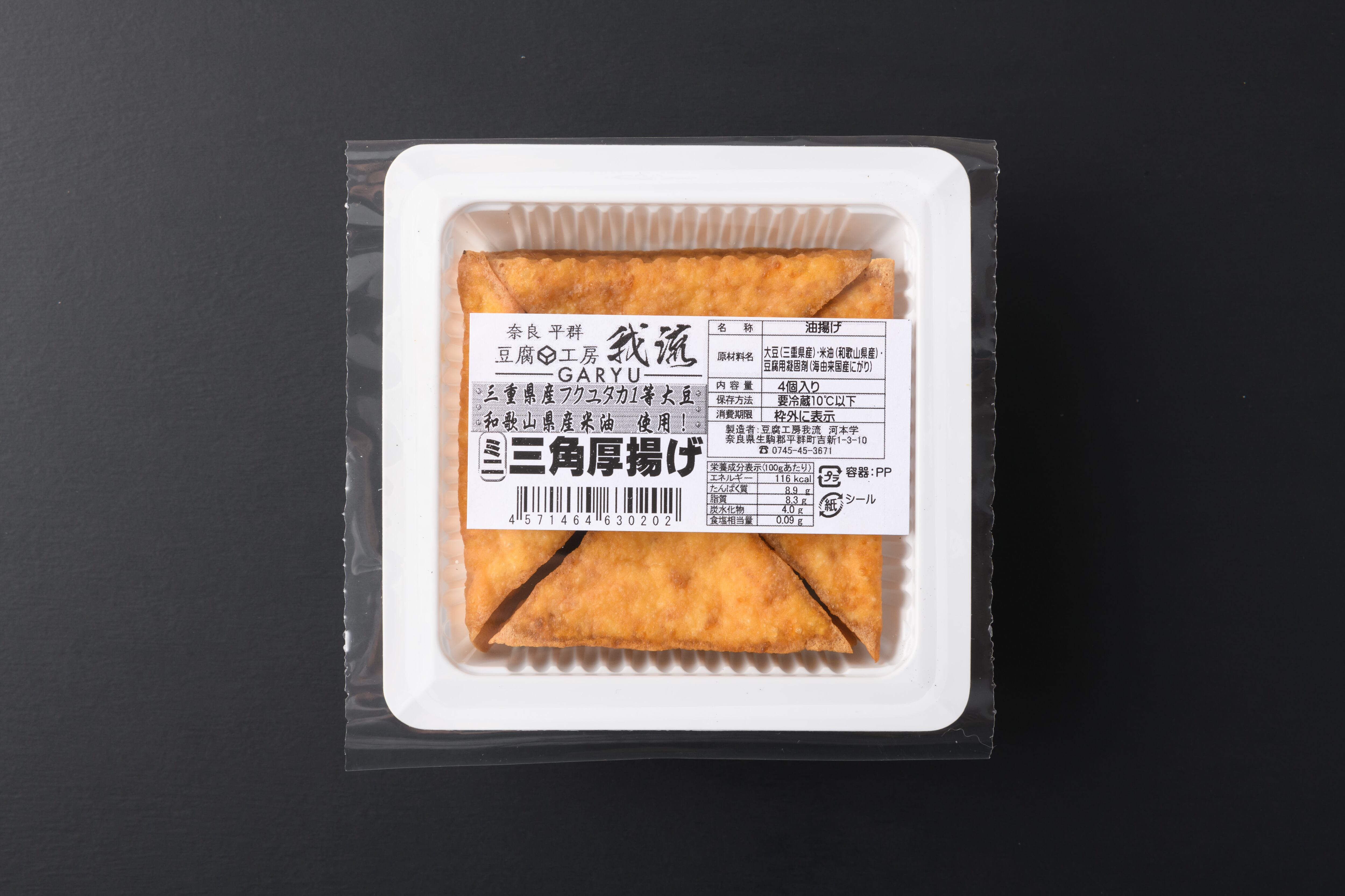 昔から奈良で使われている厚揚げです。煮しめに使われる事が多く味が染みやすく一つたべればお腹が膨れるほど食べごたえがあります。
